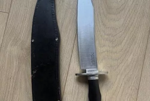 450.00 Cold Steel Natchez Bowie Nov 7, 2025 - 9:36 AM deebz Cold steel Natchez bowie San Mai made in Japan in very good shape, has a couple very minor scratc
