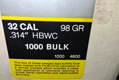 150.00 Speer 32 caliber HBWC almost full box (approx 990 by weight.) Nov 29, 2025 - 2:52 PM WhiteTailOne Approximately 990 32 caliber Hollow Based Wadcutters.