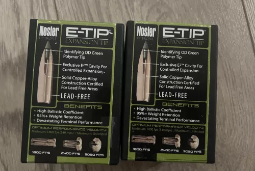 160.00 Nosler Expansion Tip 30 Caliber 180 Grain Bullets Nov 5, 2025 - 3:47 PM BJCL818386 Nosler Expansion Tip (E-Tip) 30 Caliber 180 Grain Bullets P/N 59180