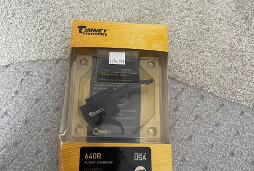 200.00 Timney Trigger for Ruger American (640R) Nov 17, 2025 - 8:29 AM johnsnow88 Barely used and professionally installed and removed.