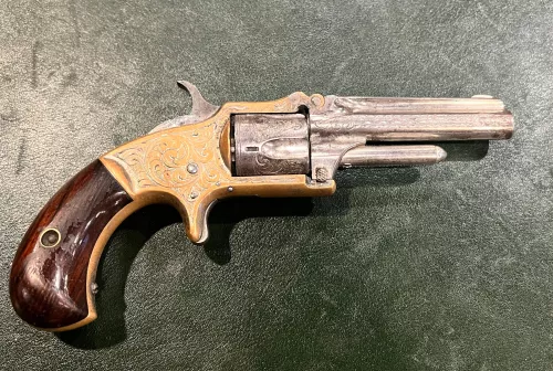 1499.00 Antique Marlin Engraved Pocket Revolver (.30RF Rimfire, 1872–1878) Nov 25, 2025 - 8:41 AM AAG Canada An authentic antique 19th-century American pocket revolver, manufactured by