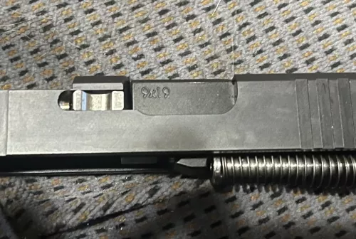SOLD 850.00 Glock G19 slide Oct 25, 2025 - 9:34 AM WestsideJohann Complete g19 slide, rmr cut with screws Ready for optic