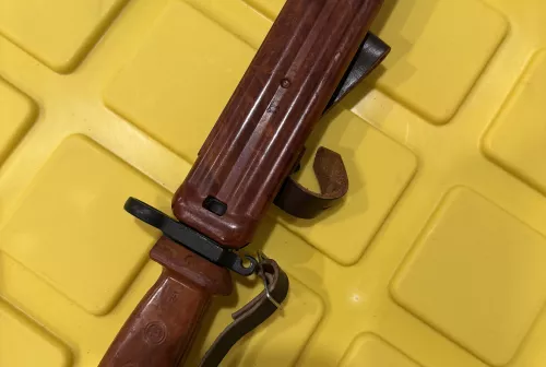 275.00 type II AKM bayonet with Bakelite handle and scabbard Nov 29, 2025 - 1:35 PM kylethesnail pattern 2 bayonet for AKM rifles, with Bakelite furniture.