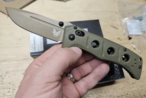 325.00 Benchmade Mini Adamas Dec 4, 2025 - 10:47 AM driller212 Brand new Benchmade Mini Adamas in CPM Cruwear. OD green habdle and FDE blade finish.