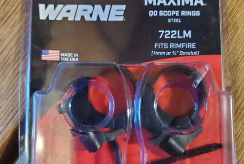 60.00 Warne QD rimfire 1 inch high Oct 27, 2025 - 5:04 PM Taliesin Brand new Warne Maxima quick detach rings for 11mm or 3/8" dovetail, 1 inch tube, 1 inch high.