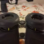 Eye relief is about 20mm. I wear glasses and can see the entire field.