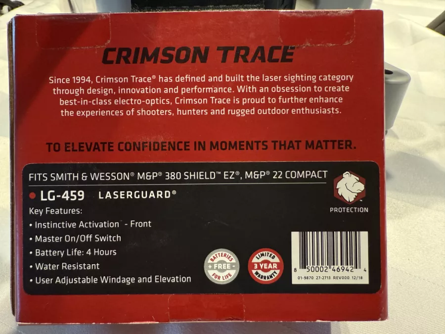 Selling a brand new in box Crimson Trace Laserguard LG-459 for the M&P 380 Shield or M&P 22 compact.