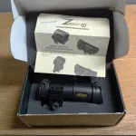Comes with the original box, promotion material, adjustment key, 30mm ring, lens caps and one CR1/3N battery.