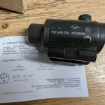 This 1x prism sight is sort of a Russian answer to the American ACOG from the 2000s. It is a heavily-built combat sight that uses a simple and effective chevron reticle that, like the American ACOG, has a tritium cell inside of the optic for night-time illumination. Like those on the ACOGs, the tritium cells on these now-discontinued sights start to dim after 10 years. The manual for this specific unit shows a factory inspection date of 2019.