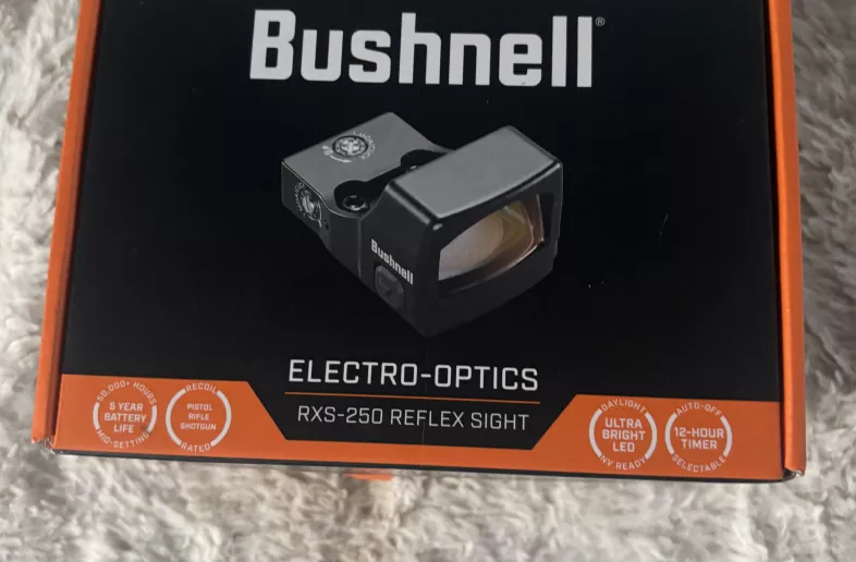 Pretty much new Bushnell RXS-250 reflex sight. 4MOA dot, auto turn off with 50000 hour battery life. Great for pistols, shotguns and rifles