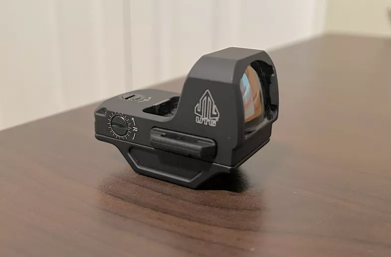 UTG OP3 Micro Red Dot Sight — barely used, like-new, no scratches, works perfectly and includes mounts. Compact 4 MOA red dot, multiple brightness settings; will ship anywhere in Canada.