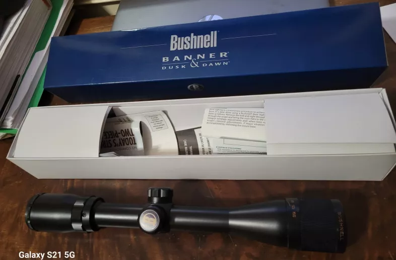 Up for grabs is a NOS - not a mark on it - Bushnell Banner 3.5x10-36 Dusk to Dawn riflescope - in the original box - was never mounted. It has the adj objective / paralax - comes with the "bullet drop compensator" turrets & 6 options. Has rain-guard, and of course the Bushnell forever warranty. Asking $175 + the ride OBO