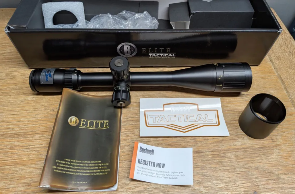 For sale is a complete-in-box BUSHNELL Elite Tactical LRS 5-15x40 AO MilDot reticle rifle scope in excellent condition.