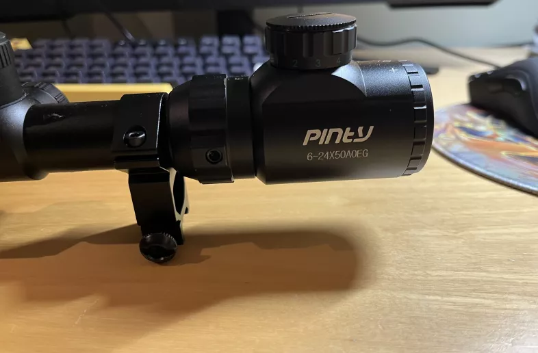 Pinty 6-24 scope. Comes with picatinny rails. Was on a ruger 10/22 and holds zero fine. 25$ and it's yours. Retails for 80$s on amazon