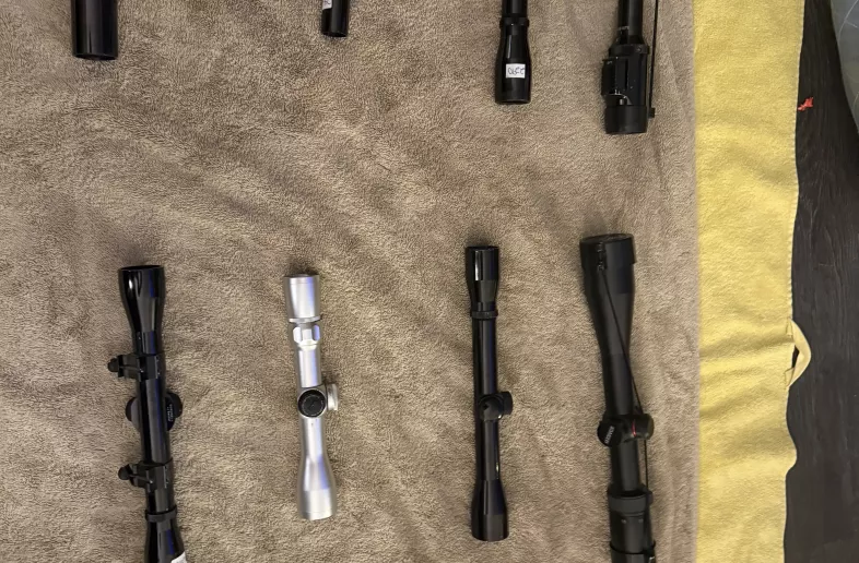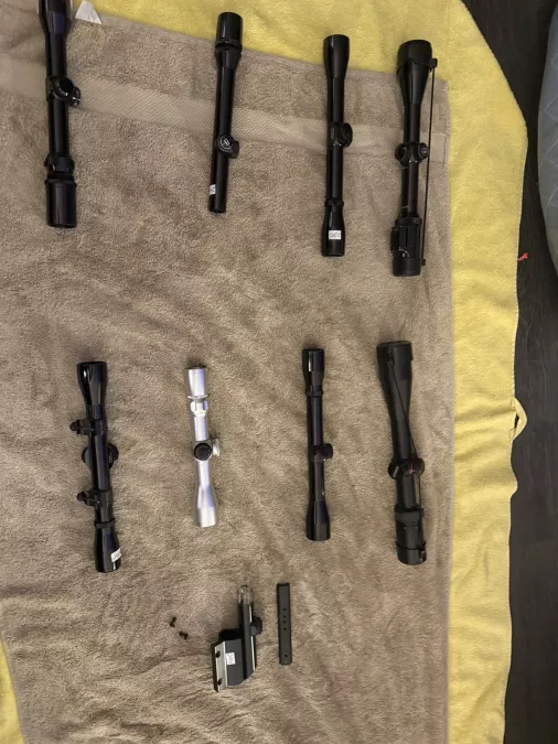 Second row far right is a Simmons 4x18 scope with lens covers 90$