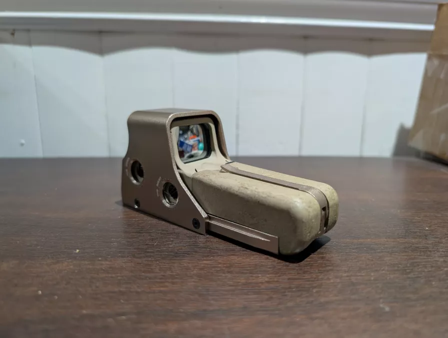 This is a clone. Had this on an airsoft gun, never had it mounted on a real firearm so I am not sure how it will hold up to recoil. Some of the rubber on the battery cover is faded a bit.