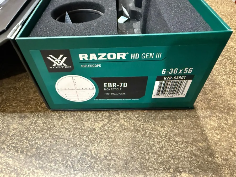Used Vortex Razor HD Gen 3, first focal plane, 34mm tube, moa reticle. Comes with vortex pro rings. Has some scratches as seen in pics. Selling for a friend.