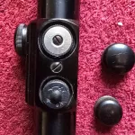 FINE CROSSHAIR RETICLE, 1"TUBE, ALL ADJUSTMENTS WORKING, FAIRLY RARE MODEL WITH DENT IN OBJECTIVE BELL AND NUMEROUS MARKS BUT BRIGHT AND CLEAR,