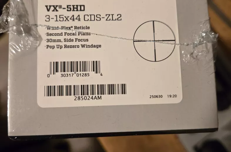 Brand new unopened VX-5HD 3-15x44 CDS-ZL2 with windplex reticle.