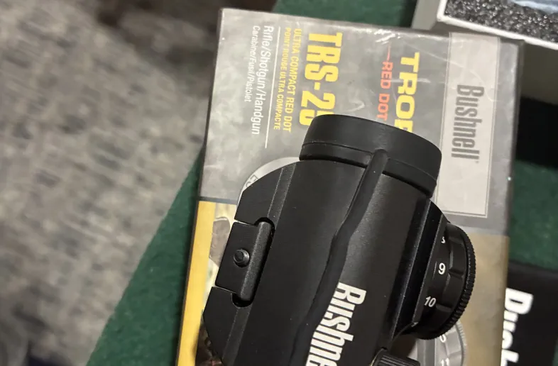 Bushnell Trophy TRS-25 red dot mounted but never left the house .