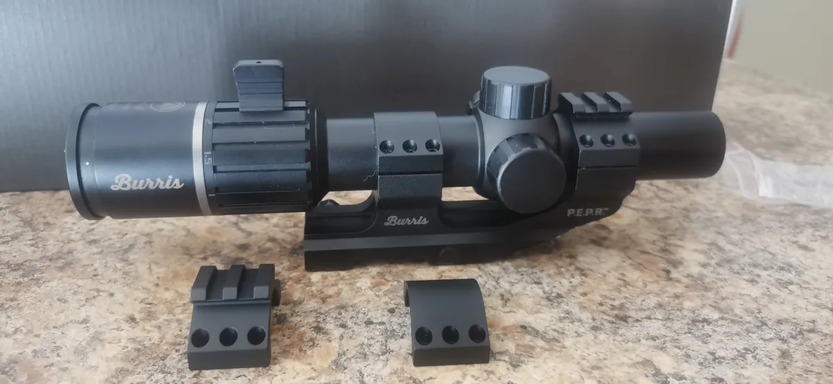 Selling my Burris RT6 scope. It had a small accident that left a light cosmetic dent, but it is strictly superficial. The scope functions perfectly and holds zero flawlessly. No impact on performance whatsoever — only the appearance.