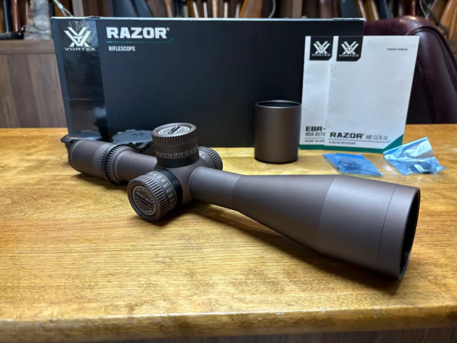 Selling/trading a Vortex Razor Gen 3 6-36x56. Overall it's in excellent shape. 34mm tube, EBR-7D illuminated MOA FFP reticle. Exterior is in excellent shape with no real notable imperfections. Glass is as new. Comes as seen with original box, manuals, sunshade, flip up lens covers, and accessories. A beautiful scope. Looking for $3950 shipped. Insurance by request on buyer. Open to all trades. Can send more pictures upon request. Pm or text/call 204 795 2850 for more info.
