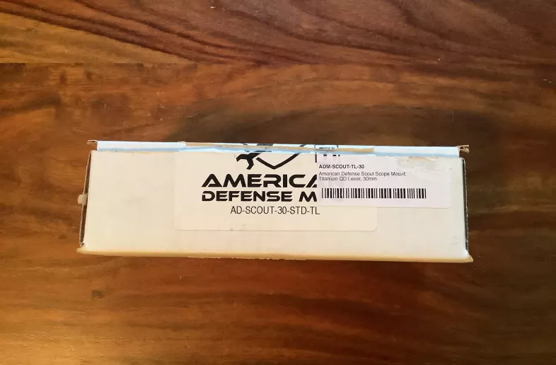 Selling a brand new, ADM American defense manufacturing scout scope mount, titanium, quick disconnect lever, 30mm rings. Part # AD-SCOUT-30-STD-TL. Never mounted on a rifle and no scope ever put in it. Includes everything it came with.