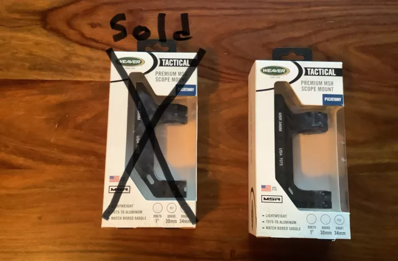 Selling a brand new in the box Weaver premium MSR cantilever mount. Match bored saddles. 7075-T6 aluminum, Type III hard-coat anodized black. USA made. Only 34mm remaining.