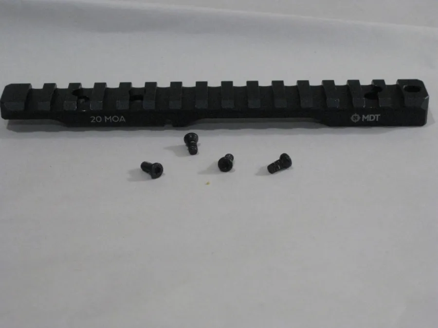 This is an MDT 20 MOA picatinny rail for a Remington 700 short action rifle. It is in very good to excellent condition and looks almost new. This rail would be excellent for long distance, precision shooting. It comes with the four mounting screws. Price is $70 shipped in a padded envelope.