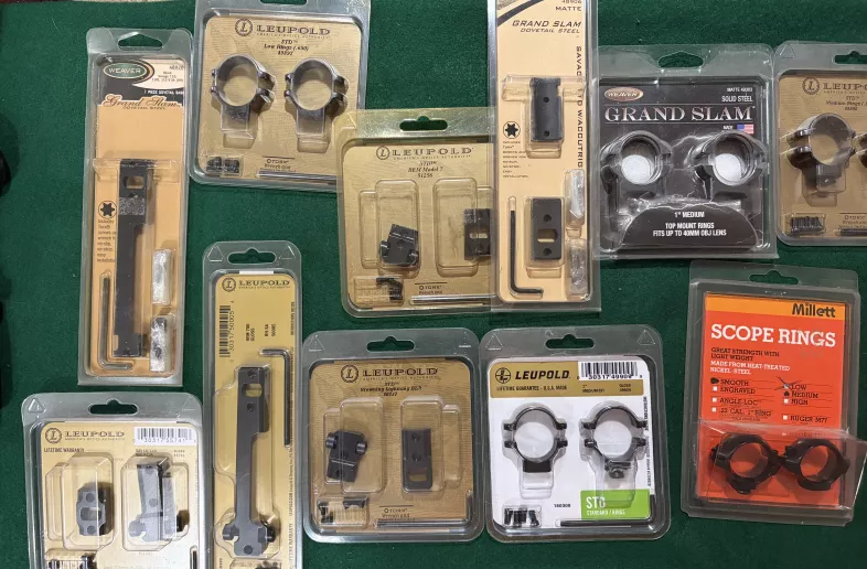 Gunsmith , Hobbyist , whatever . A job lot of mostly Leupold Bases and rings . If u expand on the pics u can pretty much see what they are . Also send me your cell # and will send pics directly . All appear pretty much “ new “ . I am not !! Interested in breaking it up , all or nothing . Priced accordingly just to de clutter . 18 pieces ? Total .