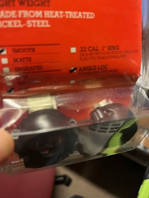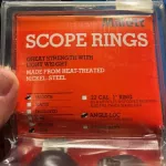 Millet brand nickel steel, high mount rings . Angle -Loc, fits weaver type bases. Black, smooth new, unopened. Transcona near Casino, cash only.