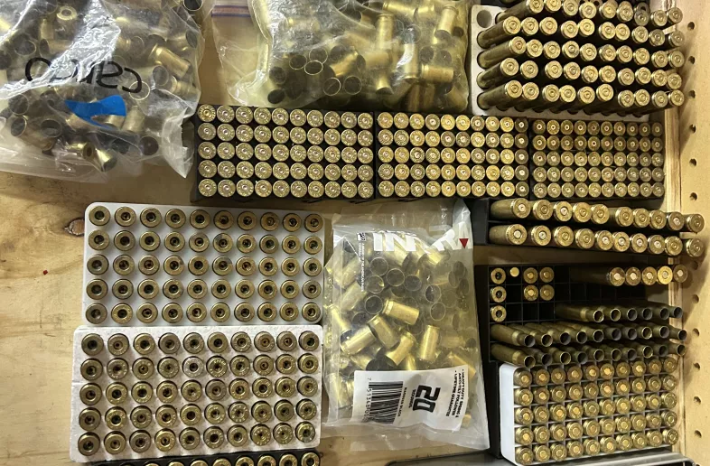 There is a mix of stuff. 45acp, 9mm, 30-06, 300wm 7mm rem mag, 357/38