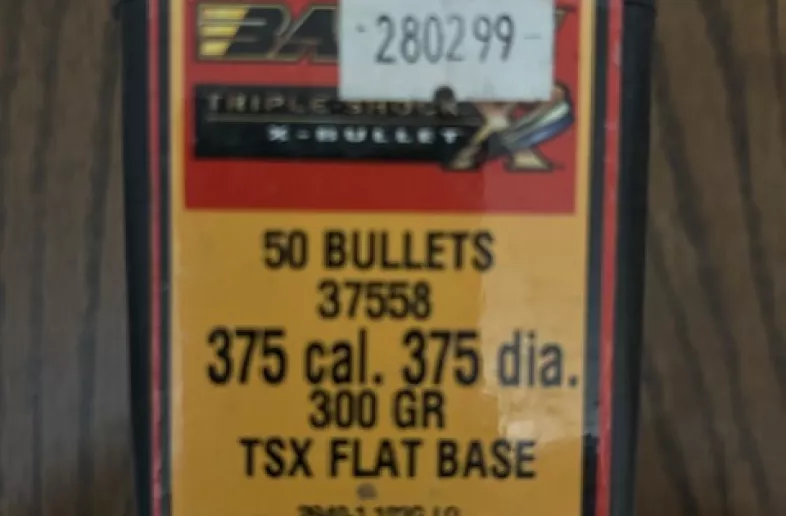 BOX OF 50 BARNES TSX 300 GRAIN FLAT BASE BULLETS .375 CAL.