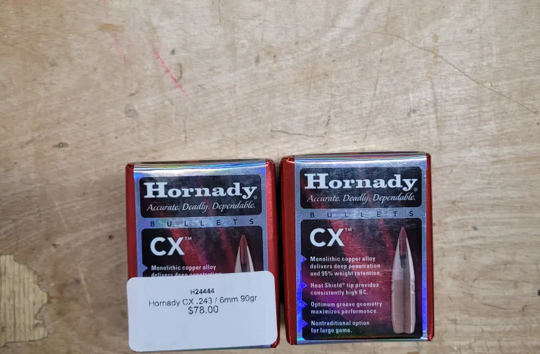 Hornady 90gr CX .243/6mm Bullets for sale.