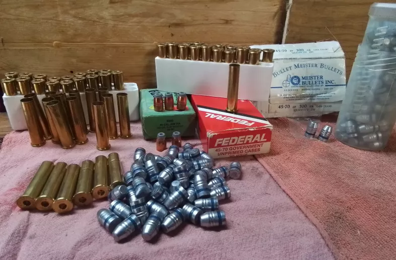 Box of 300gr Pro Hunter flat nose HP bullets in .458 dia . Also 100 pieces of Meister 300gr hard cast FP bullets in .458 dia. 20 new FC brass, 20 new RP brass and 11 RP, 5 Win and one Hornady. Total 150 bullets and 57 new brass. Price includes shipping