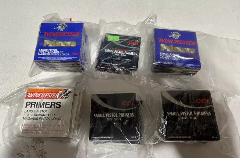 For sale 2400 assorted pistol primers will not separate local sale only You can also text at 204-792-5624