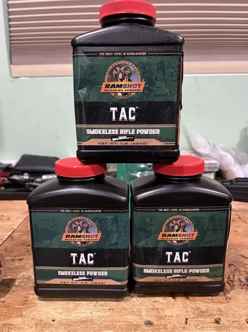 Selling 2lbs of Ramshot tac new unopened for $60.00 each. This powder works great for 308 and 30-06 great accuracy and velocity it is a great substitute for Varget and not $110.00 lb will ship if need at your cost. Thanks