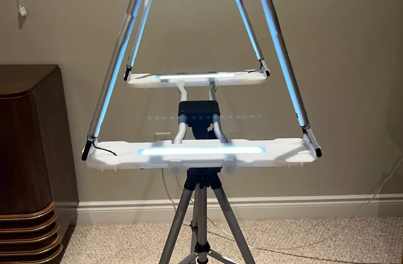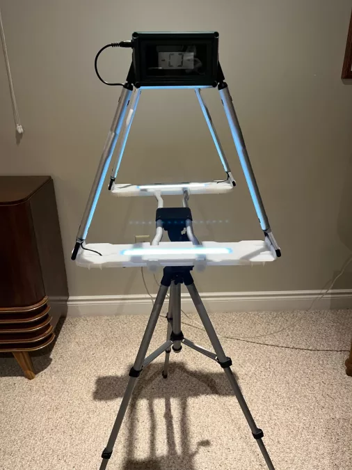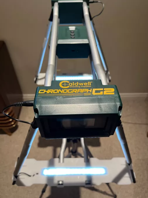 Works just like new. Compatible with Caldwell Ballistics App for blue tooth connection to iphone or Android device. LED lights ensure shots captured in poor lighting conditions. Large visible LCD displaying last shot velocity in FPS or MPS. Rechargeable lithium ion battery that holds charge for several range sessions. Works for firearms, archery and air guns. Tripod and carry case included.