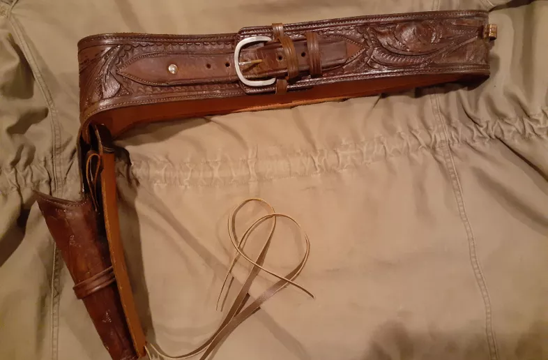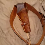 Brown Leather holster for .357 or .38 special shells in loops. Fits Colt SAA type pistols. Excellent condition. Made in Mexico. Marked 42 for the waist size, I measured it and it is 42 inches at the largest.